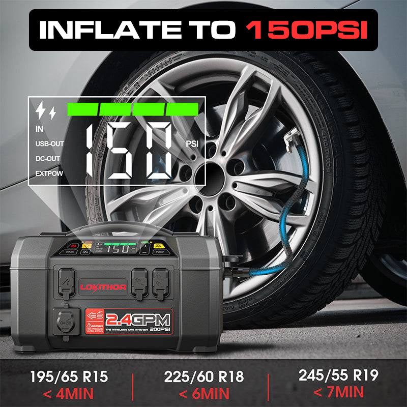 LOKITHOR AW401 best portable jump starter for diesel trucks utilise a powerful 100-watt motor to drive the high-pressure water pump. The handheld shower head can be adjusted with various settings such as Jets, Fans, Mists, and Showers. With up to 200 PSI pressure, it is perfect for quick cleanups for car wash, pet bath, garden watering, outdoor shower, etc.